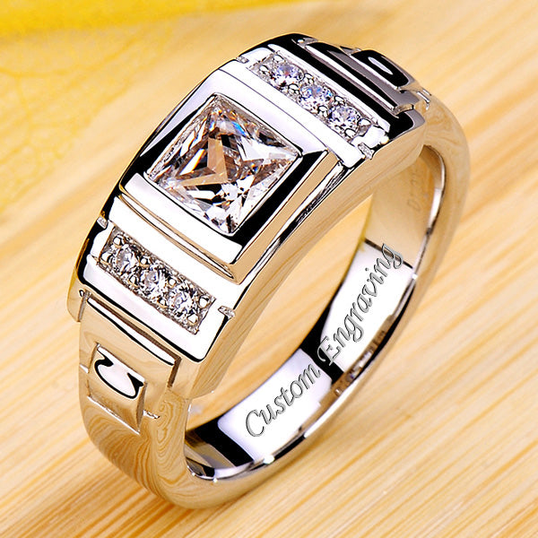 1 Ct Princess Cut Lab Diamond Ring for Men (Custom Engravable)