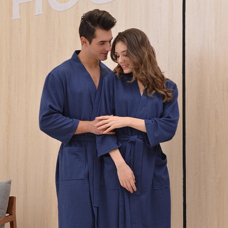 Elevate your couple's nightwear game with our polyester robe set. Order yours today and experience the perfect blend of comfort and style.