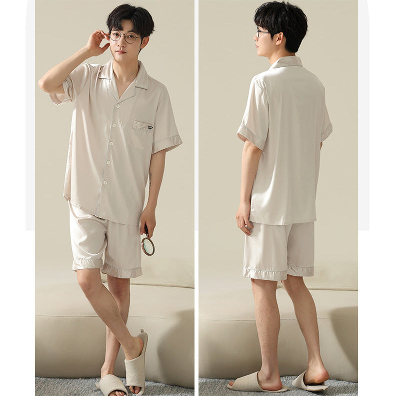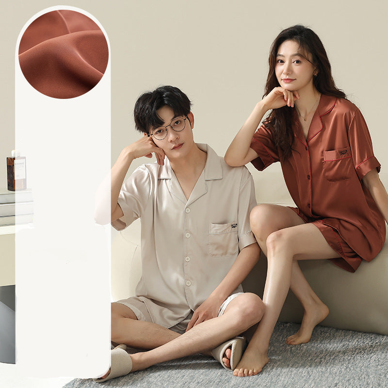 Silky Satin Couple Pajamas - Cool Short Sleeve Luxury Set