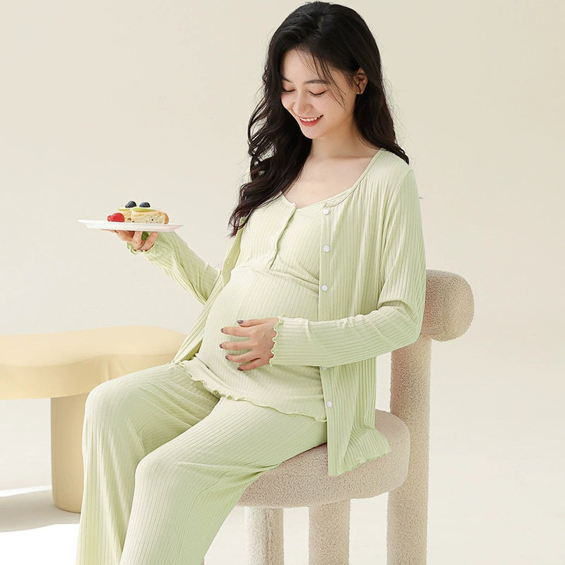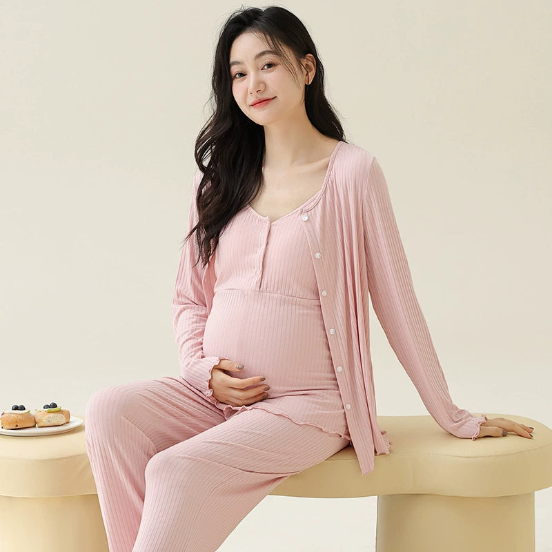- Complete 3-Piece Set: Includes a long-sleeve nursing top, full-length pants, and a matching lightweight robe.