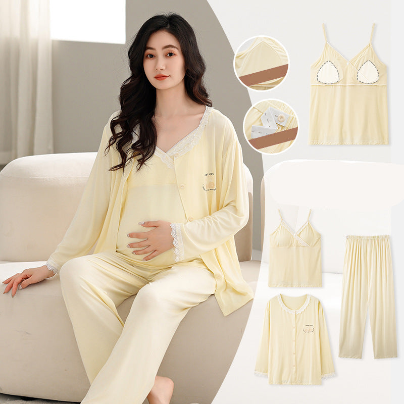 Yes! This 3-Piece Soft Sleepwear Pregnancy Lounge Set is designed as a thoughtful 3-Piece Ensemble, including a supportive camisole (with built-in pads), a graceful cardigan, and comfortable pants. This adaptable set is perfectly suited for relaxed home activities and convenient daytime wear, allowing seamless transitions to quick outings like prenatal classes or park strolls, ensuring comfort and presentability. It's also an ideal companion for hospital stays, postpartum recovery, or serene trips, providing adaptive comfort and effortless practicality when you need it most.