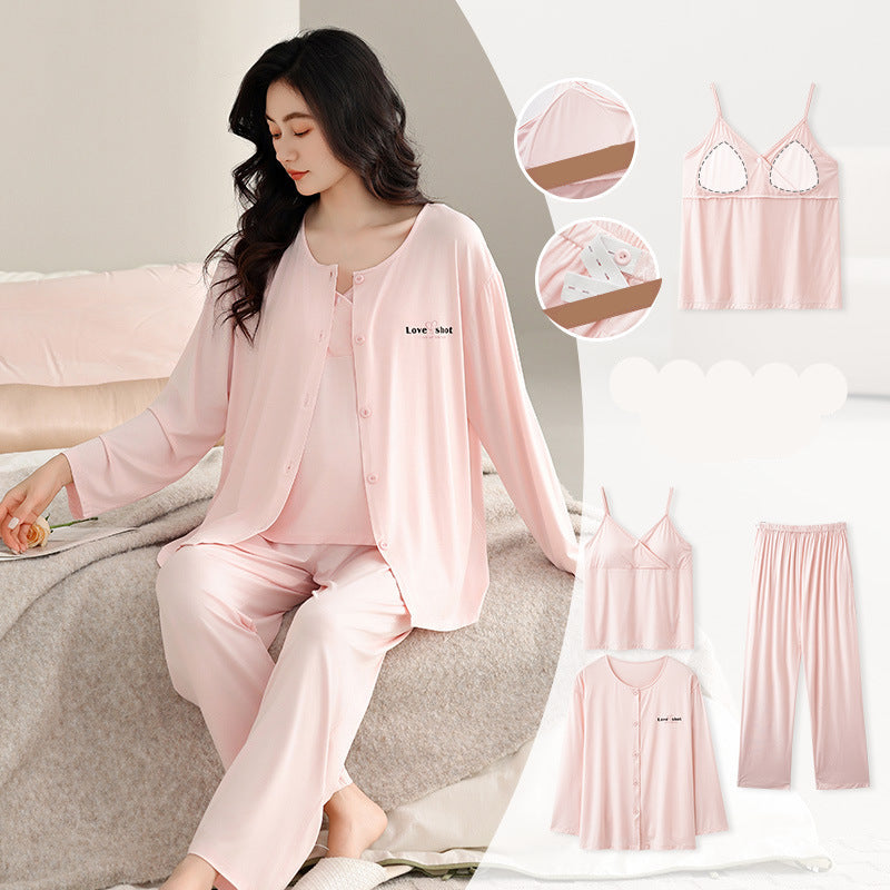Yes! This 3-Piece Soft Sleepwear Pregnancy Lounge Set is designed with integrated 3-Piece Versatility, including a supportive camisole (with built-in pads), a coordinating cardigan, and comfortable pants. This adaptable set is perfectly suited for relaxed days at home and effortless errands & appointments, allowing seamless transitions to quick doctor visits or essential errands. It's also an ideal companion for comfortable travel & hospital stays, providing adaptive comfort and effortless practicality during this special time.
