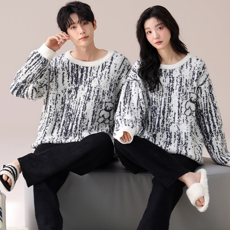 4-Piece Flannel Comfy Bear Pajamas for Couples