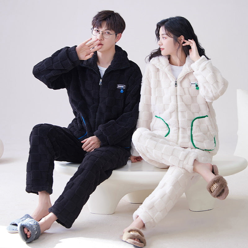 Indulge in ultimate warmth and comfort with our 4-Piece Thickened Flannel Couples Pajama Set. Crafted from premium thickened flannel, these soft and cozy pajamas are perfect for the coldest winter nights. The loose fit, long sleeves, and plush fabric provide maximum warmth, making them ideal for snuggling up on the couch or staying warm in bed.