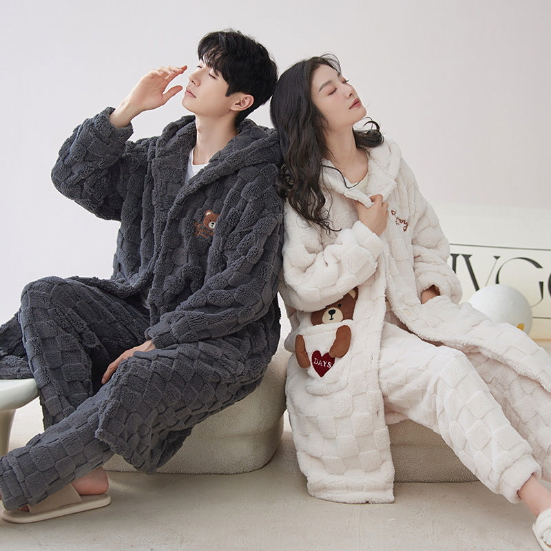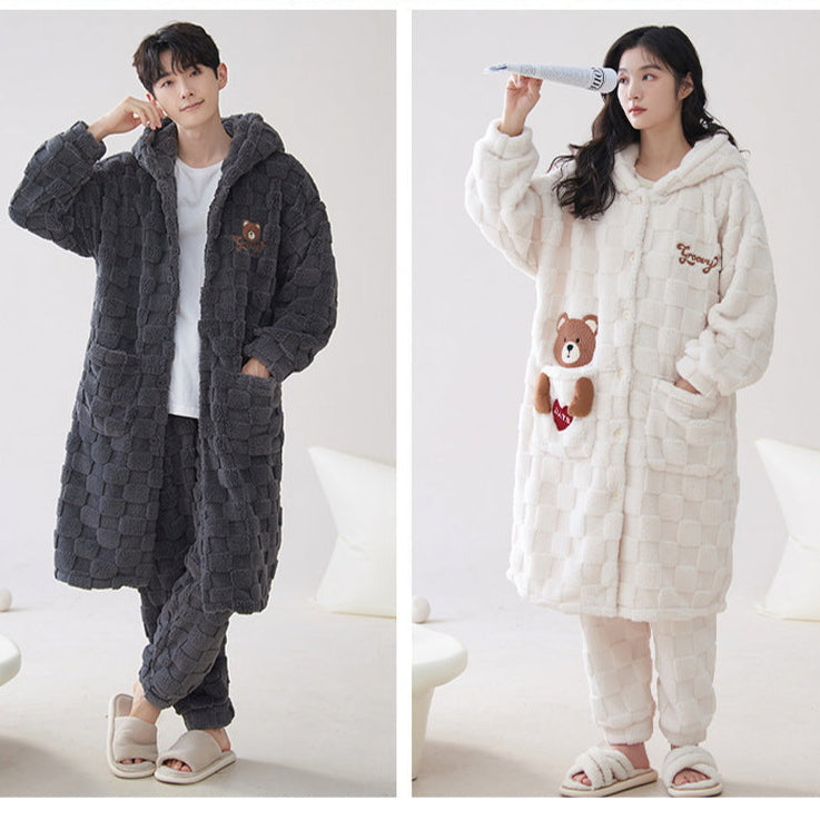 Stay warm, cozy, and coordinated this winter with our 4-Piece Warm Matching Hoodie Pajamas Set. Crafted from premium 100% polyester coral fleece, this set offers exceptional warmth and a luxuriously soft, velvet-like feel. The cute bear pattern adds a touch of playful charm, making it perfect for cozy nights in, cute matching winter outfits, or casual winter outings.