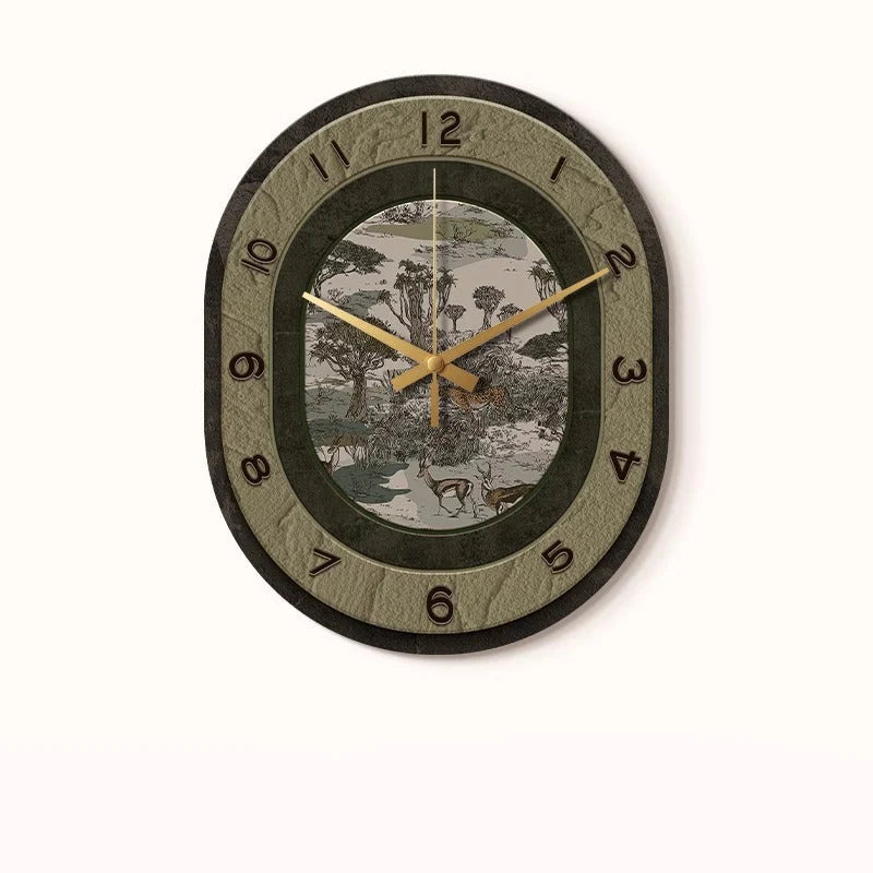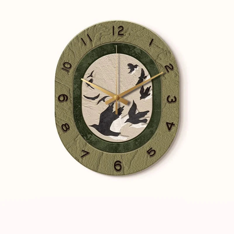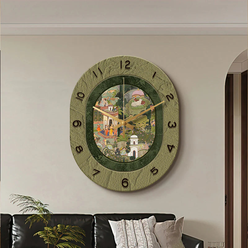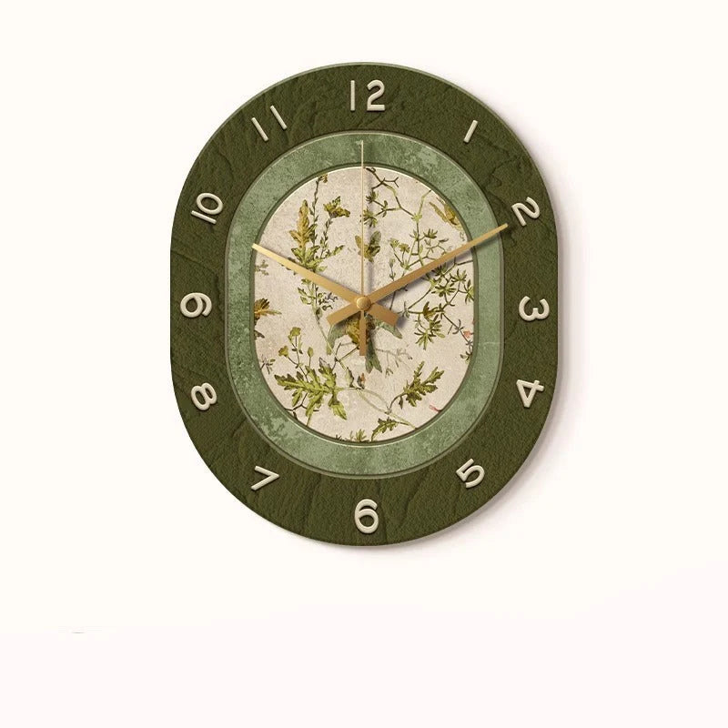 Vintage glamour meets botanical calm. This oval Art Deco floral wall clock pairs a layered, gallery-like frame with a mirrored acrylic dial printed in rich UV florals. The silent sweep mechanism moves smoothly—no ticking—so living rooms, bedrooms and studies stay serene.