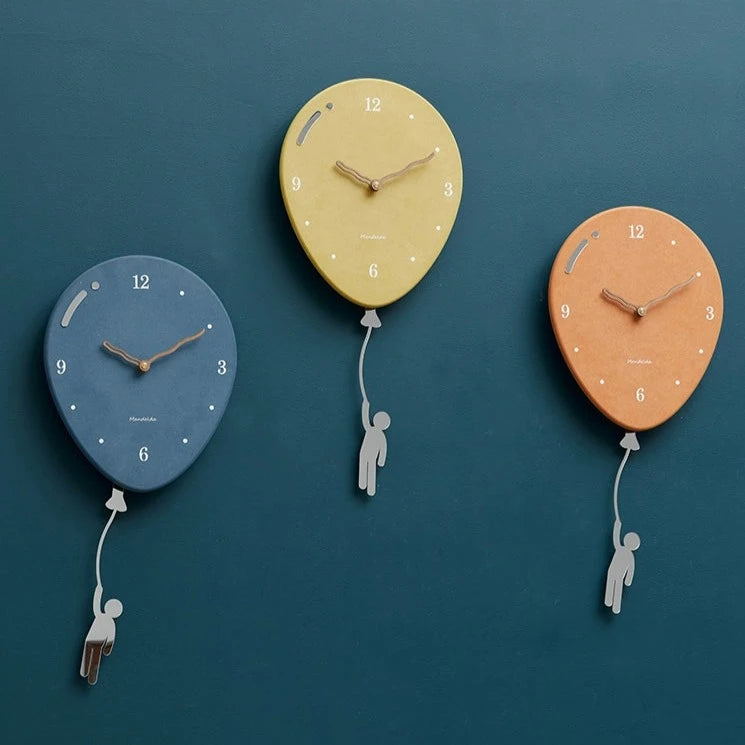 Bring a touch of whimsical charm and quiet timekeeping to your child's room with the Balloon Shaped Pendulum Analog Wall Clock! This playful timepiece features a delightful hot air balloon design, gentle pendulum movement, and silent operation, creating a fun and functional atmosphere in your kid's bedroom, kindergarten, living room, or study room.