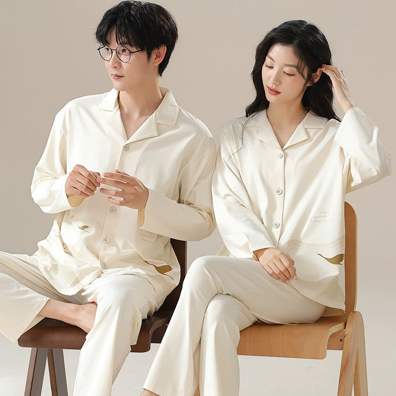 Imagine those relaxed mornings and cozy evenings, made even more special by the simple comfort of classic pajamas, shared with your loved one. Our Button-Front Pajamas Set Premium Cotton is designed for those moments of uncomplicated togetherness. Crafted from premium 100% cotton, these matching pajamas offer a luxuriously soft and breathable feel, perfect for Spring & Autumn and gentle on sensitive skin. The timeless button-front design with long sleeves ensures comfortable lounging, whether you are enjoying home relaxation, relaxed outdoor activities, or simply seeking comfortable loungewear. A thoughtful choice for holiday gifts, or as matching couple wear, this set is a beautiful way for eco-conscious established couples living together to embrace classic comfort and shared moments.