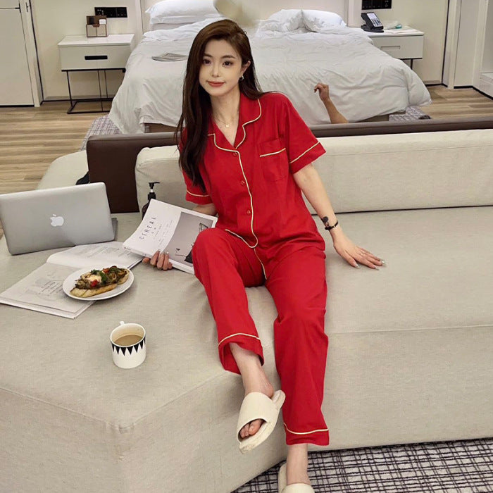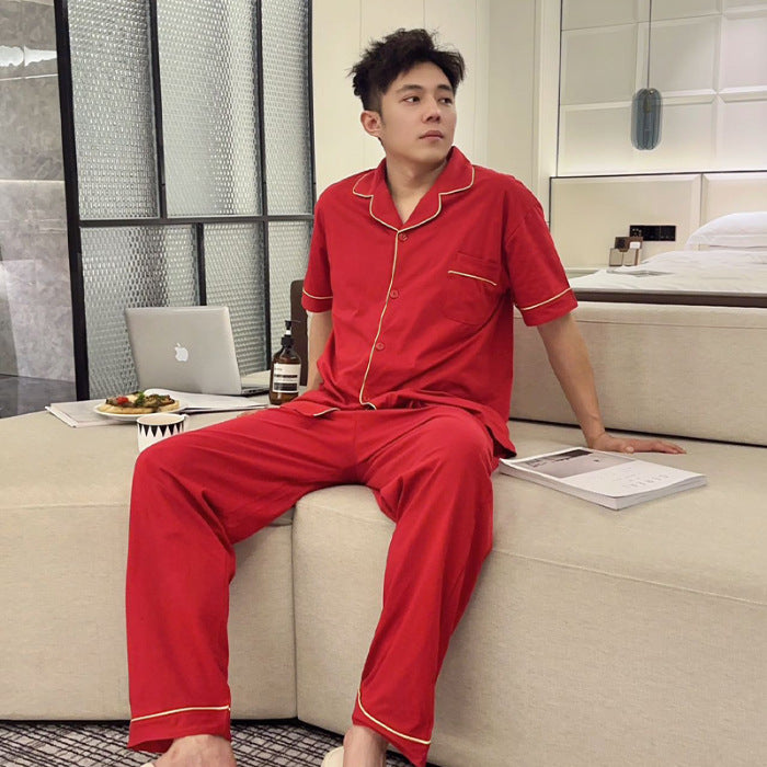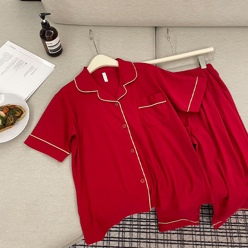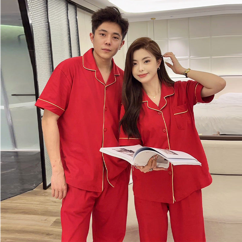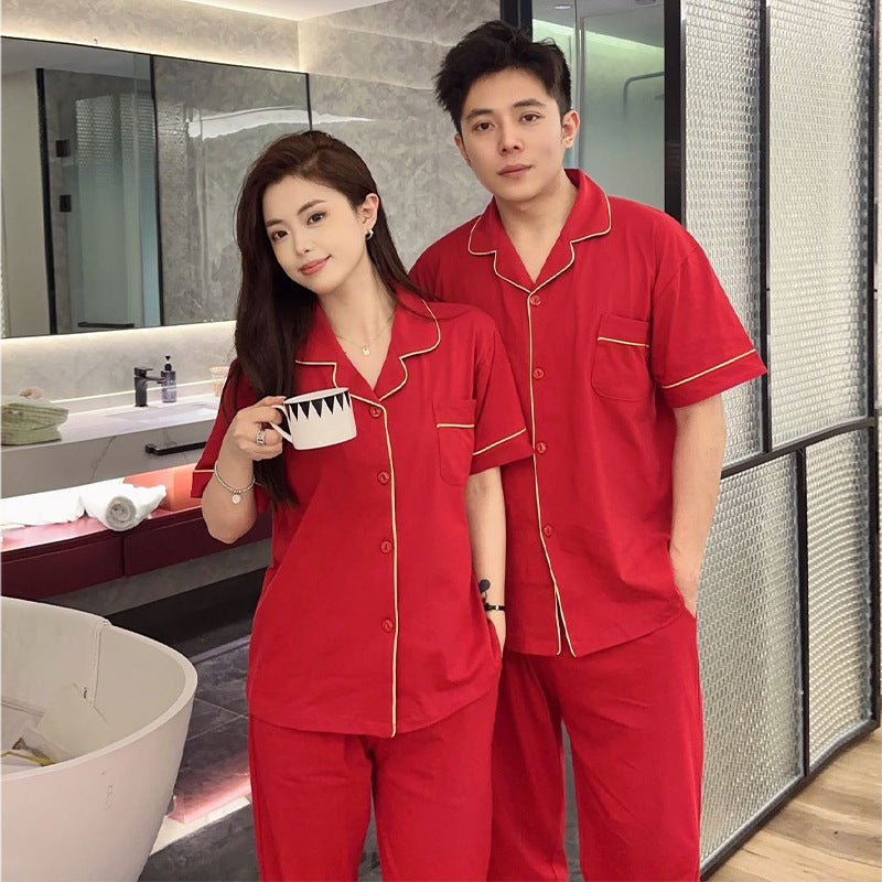 Some styles are timeless for a reason. This classic pajama set is the epitome of enduring elegance and pure comfort. Crafted from 100% pure, breathable cotton, it feels exceptionally soft against the skin from the very first wear. The vibrant red hue makes every moment feel like a celebration, while the sophisticated notched collar and contrast piping provide a sharp, polished finish. It’s a truly essential piece for any couple who appreciates classic design and luxurious relaxation.