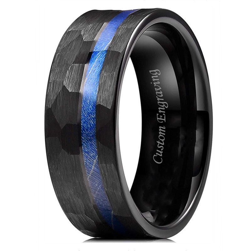 Comfort Fit Mens Hammered Ring with Custom Engraving
