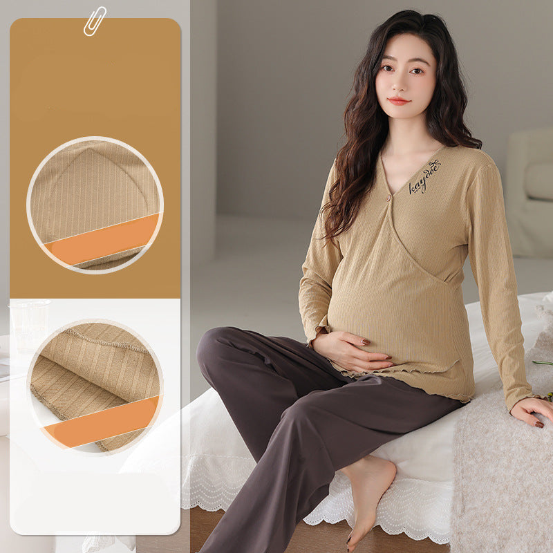 Yes! This maternity sleepwear lounge set with nursing access embodies a casual chic style, featuring a ribbed top and a modern contrasting color design. It's perfect for relaxed days & restful nights at home, unwinding, achieving peaceful sleep, and creating a serene sanctuary during your pregnancy and postpartum recovery. Beyond home, it's your essential comfort for brief ventures—your go-to choice for quick, necessary errands or close-to-home appointments where supreme comfort and ease are paramount. This indispensable maternity lounge set combines long sleeves + long pants (with cuffs), making it versatile for your dynamic lifestyle.