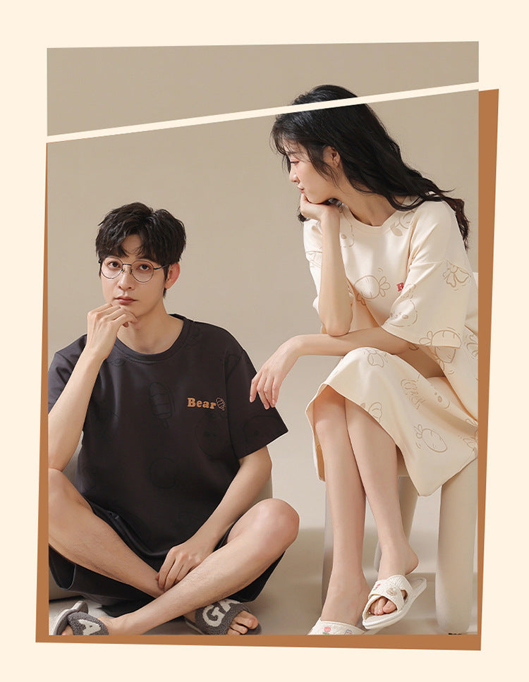 Cute Matching Summer Sleepwear for Couples (Bear & Rabbit Design, 100% Cotton)