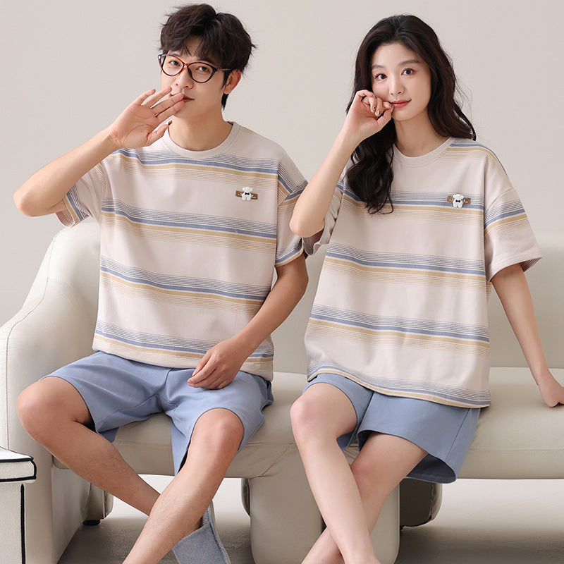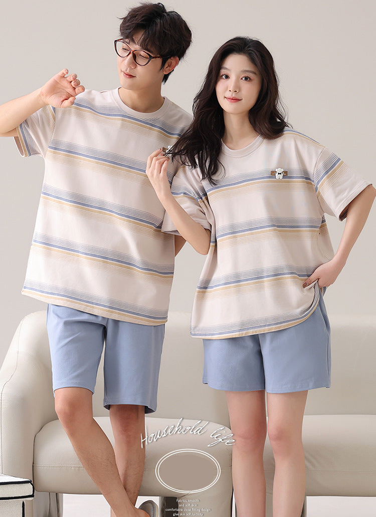 Comfy Striped Couple Pajamas - Soft 100% Cotton Summer Set