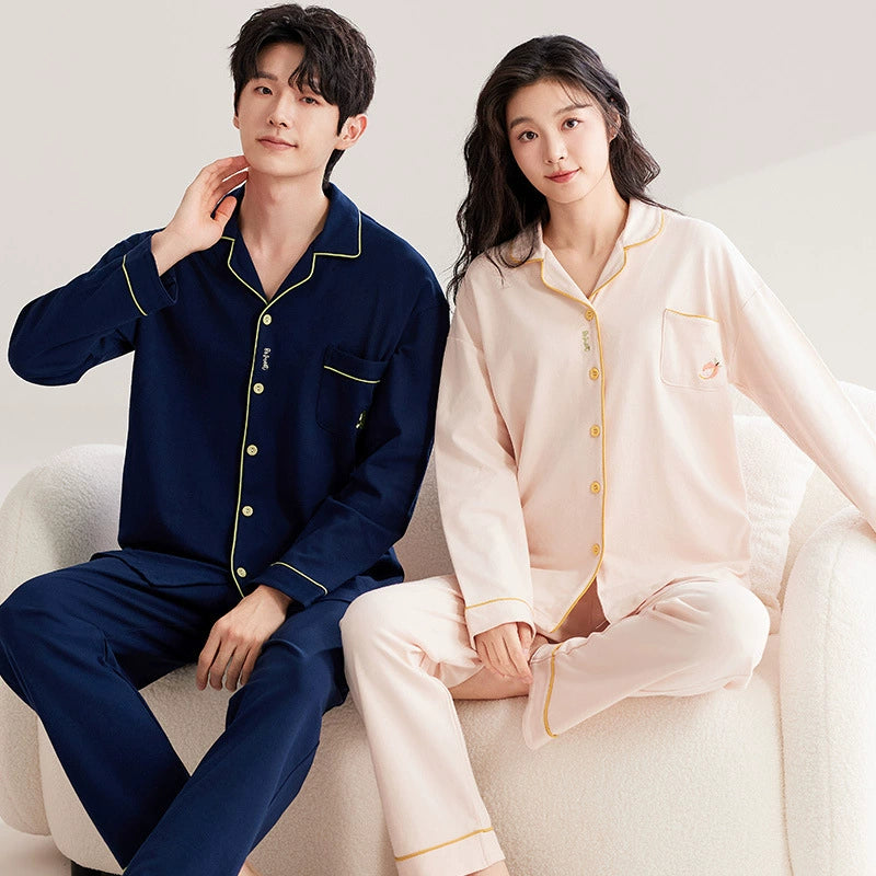 A: We focused on the details. The timeless, classic cut combined with chic contrast piping creates a sophisticated silhouette. This is a refined his and hers matching set that elevates your loungewear, making it perfect for gifting or simply treating yourselves.