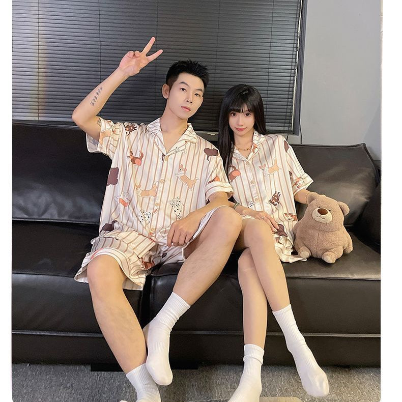 Cute Dog Couple PJs: Cooling Summer Matching Set