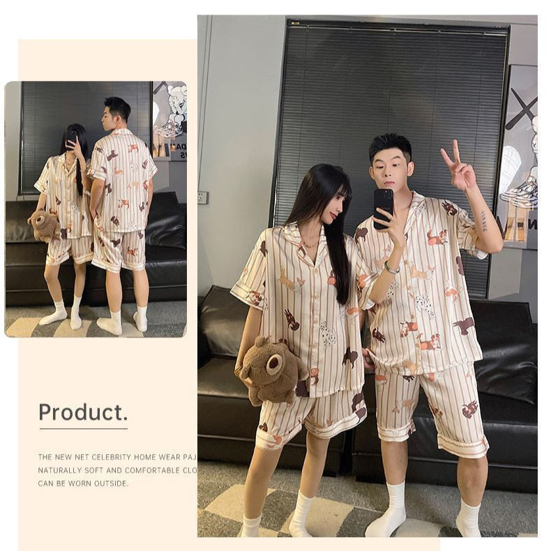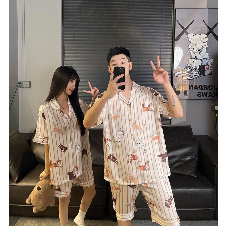 Stay cool this summer in our cute matching couple pajamas featuring an adorable dog print! Made with a cooling, silky fabric for ultimate comfort.