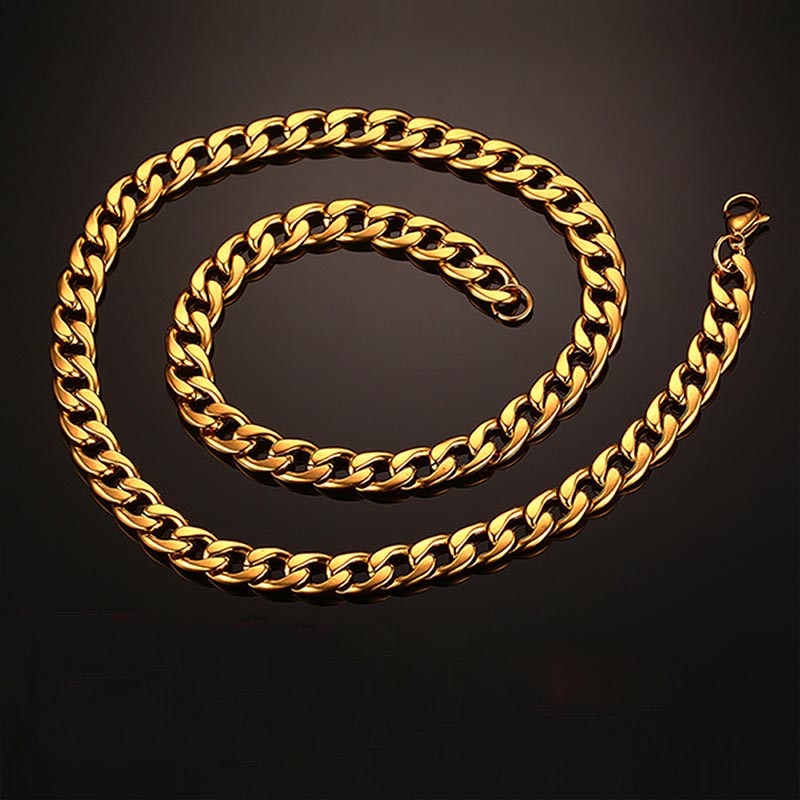 This anti-rust and anti-allergic highest quality stainless steel men's Cuban Curb chain necklace features multiple thickness and length for a chain and is available in an elegant silver, gold and black tone. It will be shipped in an exquisite gift box and a gift card which makes it a perfect birthday, anniversary, valentines or christmas gift for men.