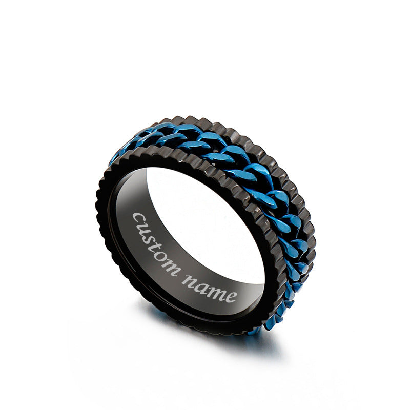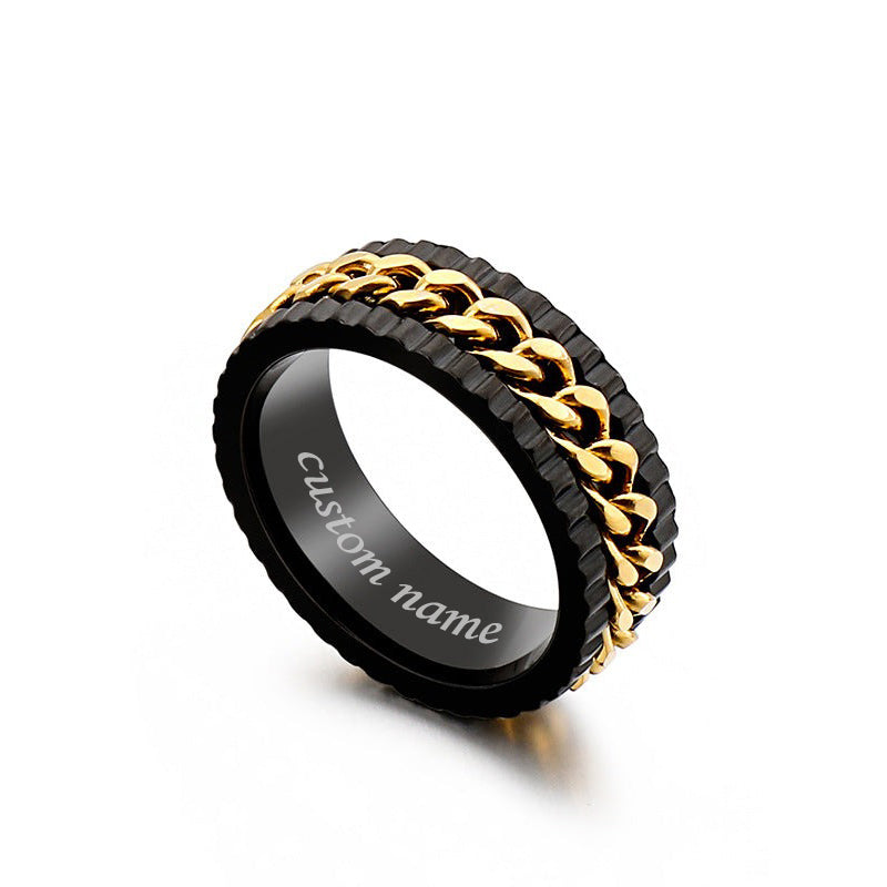 Elevate your fashion game with our Custom Chain Men's Fashion Ring, featuring a bold 8mm width and meticulously crafted from durable stainless steel. This unique ring boasts a stylish chain-link design, perfect for those who appreciate edgy and unconventional accessories. It's a great gift choice for someone looking to make a statement with their style, and you can personalize it to add a meaningful touch.