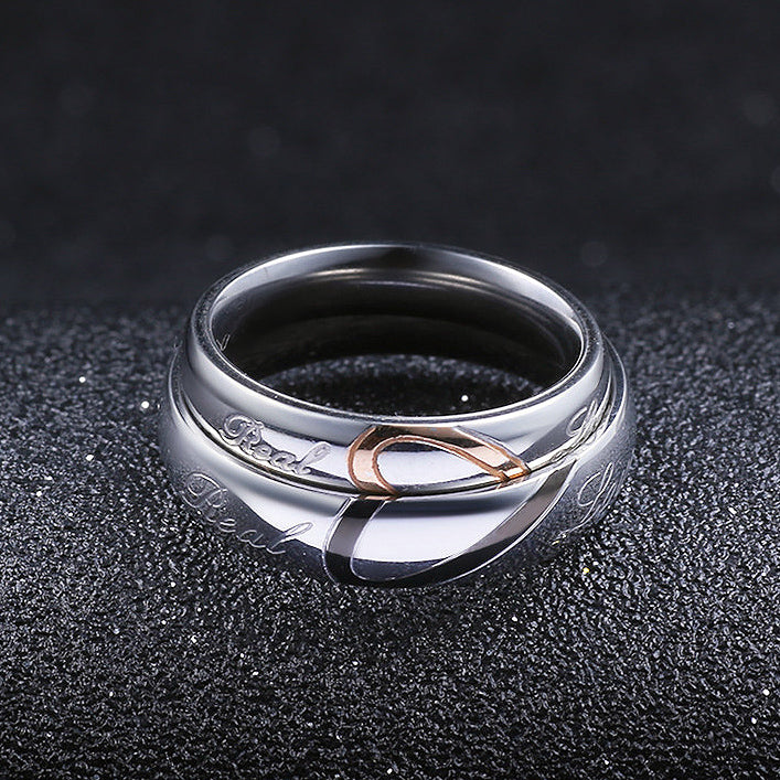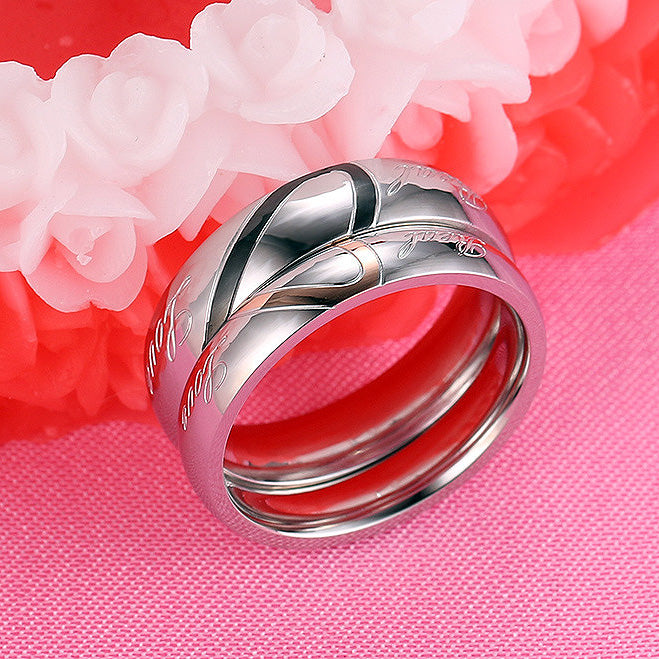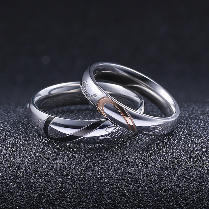 Custom Engraved Matching Half Heart Promise Couples Rings