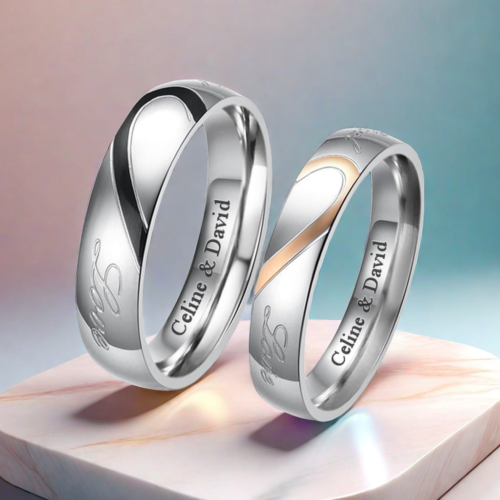 These rings are more than just an accessory; they're a constant reminder of the love you share. Order your Personalized Matching Half Heart Couple Rings today and express your love in a way that truly speaks to your hearts!