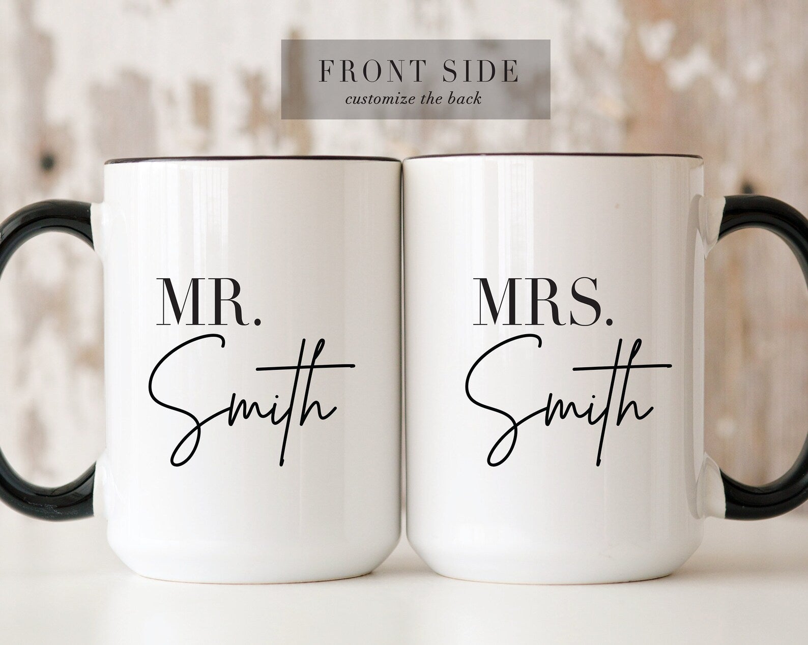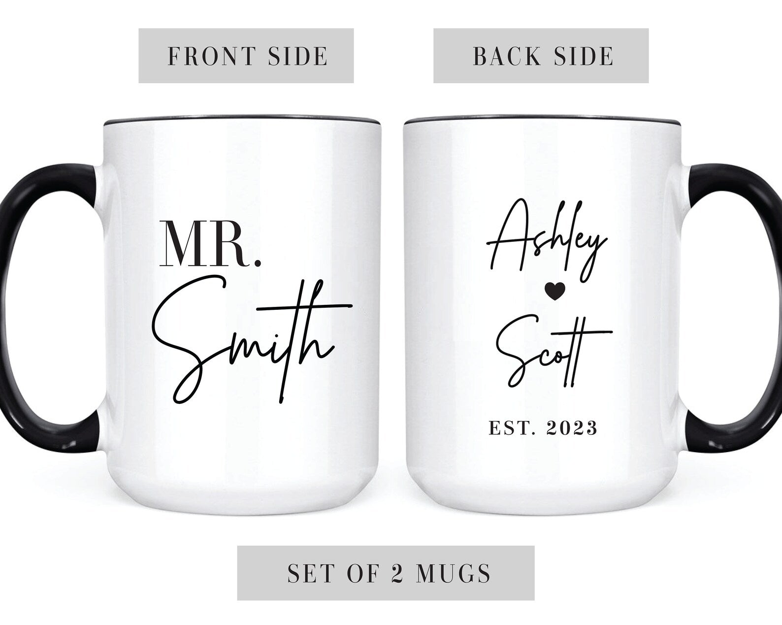 Celebrate your love story with this set of personalized Mr. & Mrs. mugs!