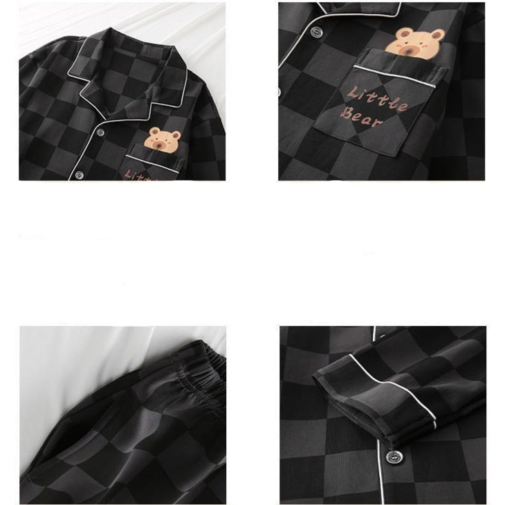 Cute Bear Summer Couple Pajamas Set 100% Cotton