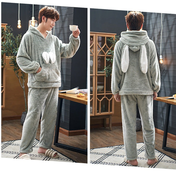 Cute Holiday Christmas Hoodie PJs Set for Couples Winter Sleepwear