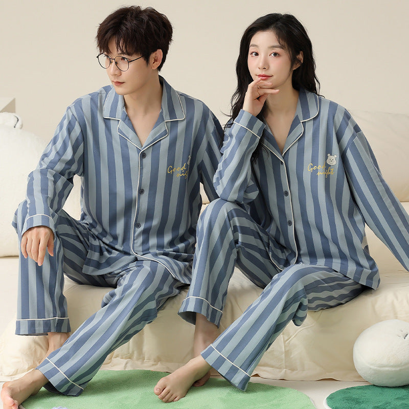 Settle in for a cozy night with these Cute Sleepwear Pajamas Sets for Couples! Crafted from soft, 100% cotton with stylish pockets and an elastic waistband, you can lounge comfortably on the couch without worrying about sacrificing style. Environmentally friendly dyes mean the set is gentle on the skin--so you can relax without worry!