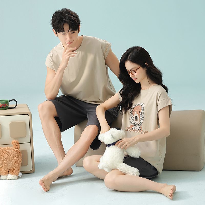 Playful Dog Print Couple's Pajama Set | Healthy Summer Loungewear