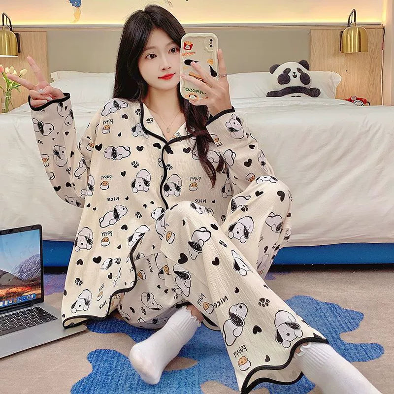 Imagine being greeted by wagging tails and happy barks every time you reach for your pajamas. This isn't just a pajamas set; it's a heartwarming hug in fabric form, designed to bring a smile to your face and a cozy warmth to your soul. Crafted from the purest 100% Organic Cotton and adorned with an irresistibly charming dog print, our Long Sleeve Pajamas Set is your invitation to embrace everyday joy and unparalleled comfort, all year round. Ready to snuggle up in canine cuteness and make every night a paws-itively delightful dream?