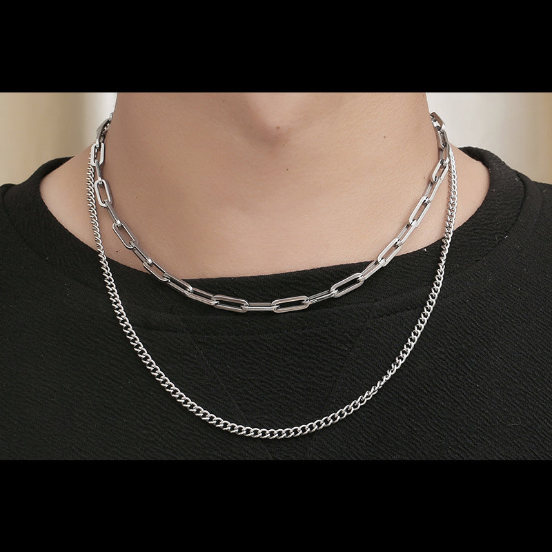 Double Layered Chain Mens Necklace