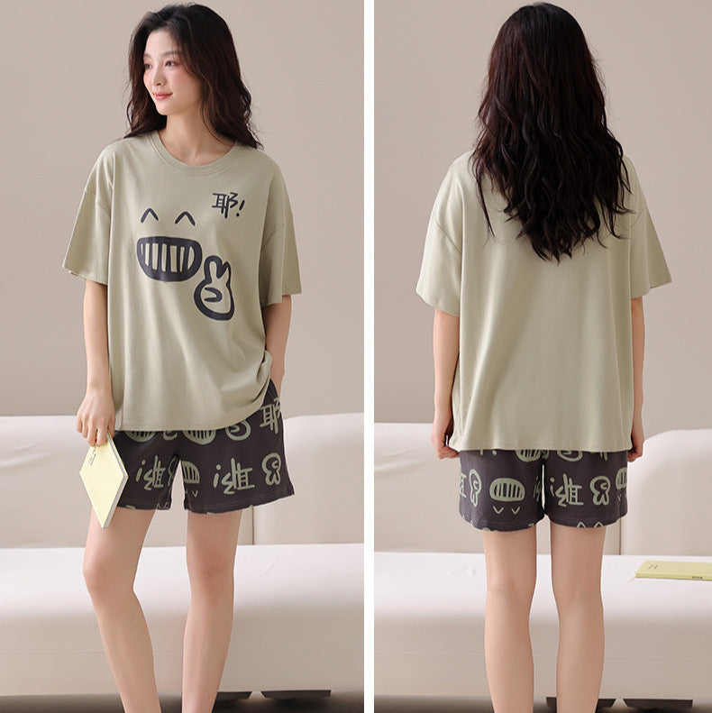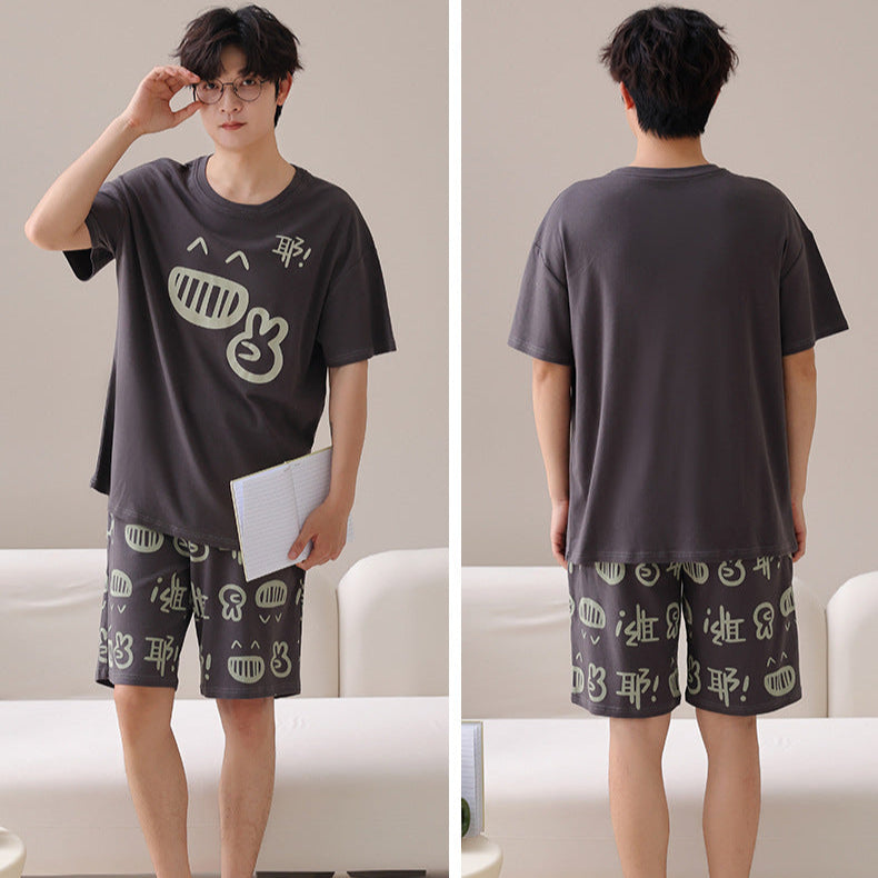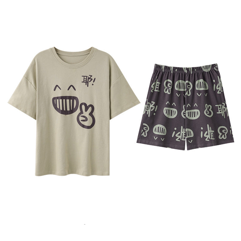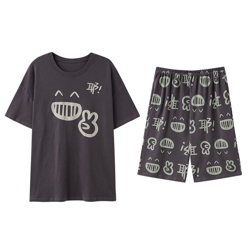 Share your happy vibe without saying a word. This playful pajama set is all about fun, expressive graphics and pure, simple comfort. The t-shirt features a cheerful emoticon-style design, with a clever inverse color scheme for a perfectly coordinated "his and hers" look. Crafted from 100% pure, breathable cotton, this set feels incredibly soft against the skin, making it the ideal uniform for relaxed days, comfortable nights, and sharing a smile.