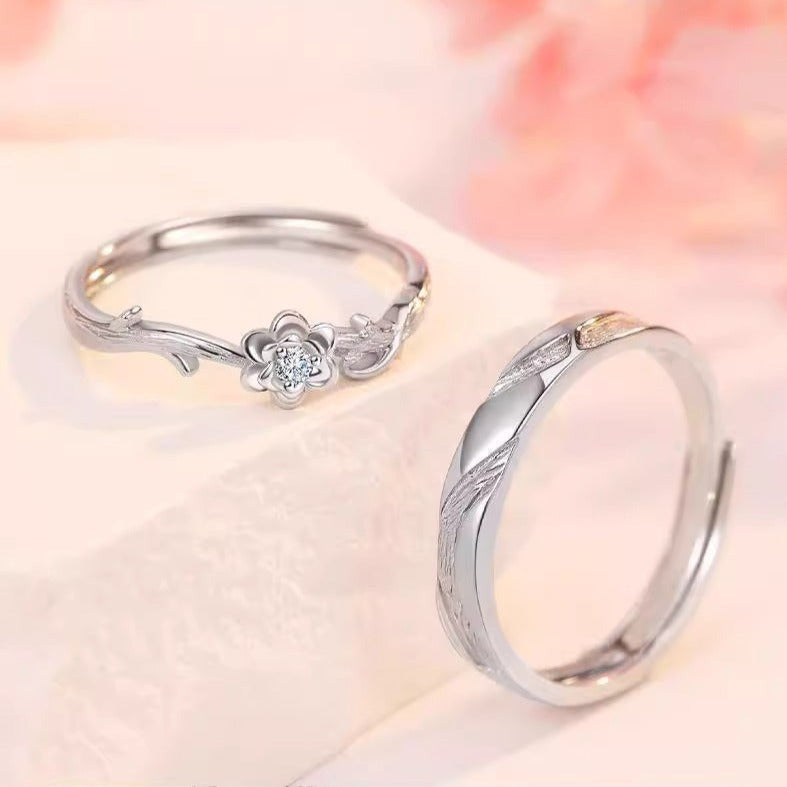 - Elegant Floral & Branch Design: Her ring showcases a beautiful flower with a central cubic zirconia, stemming from delicate leafy branches. His ring features a complementary, subtly etched branch design.