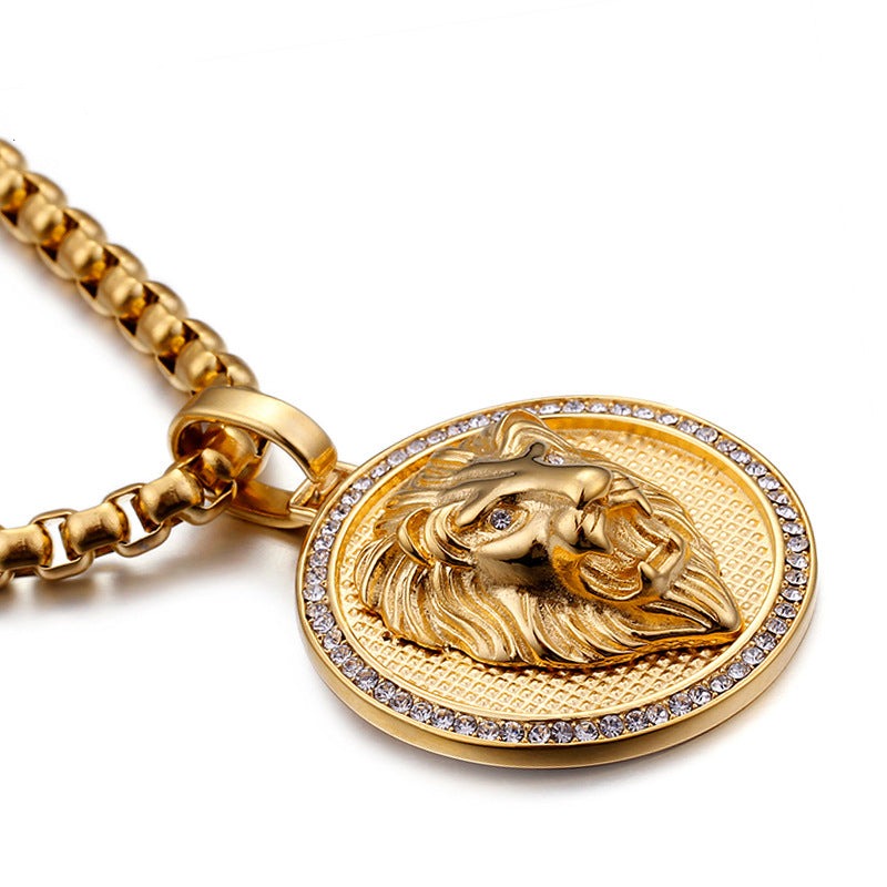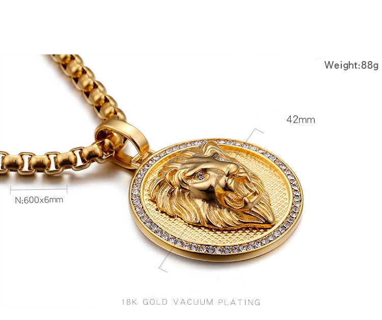 Engravable Lion Face Mens Pendant Necklace