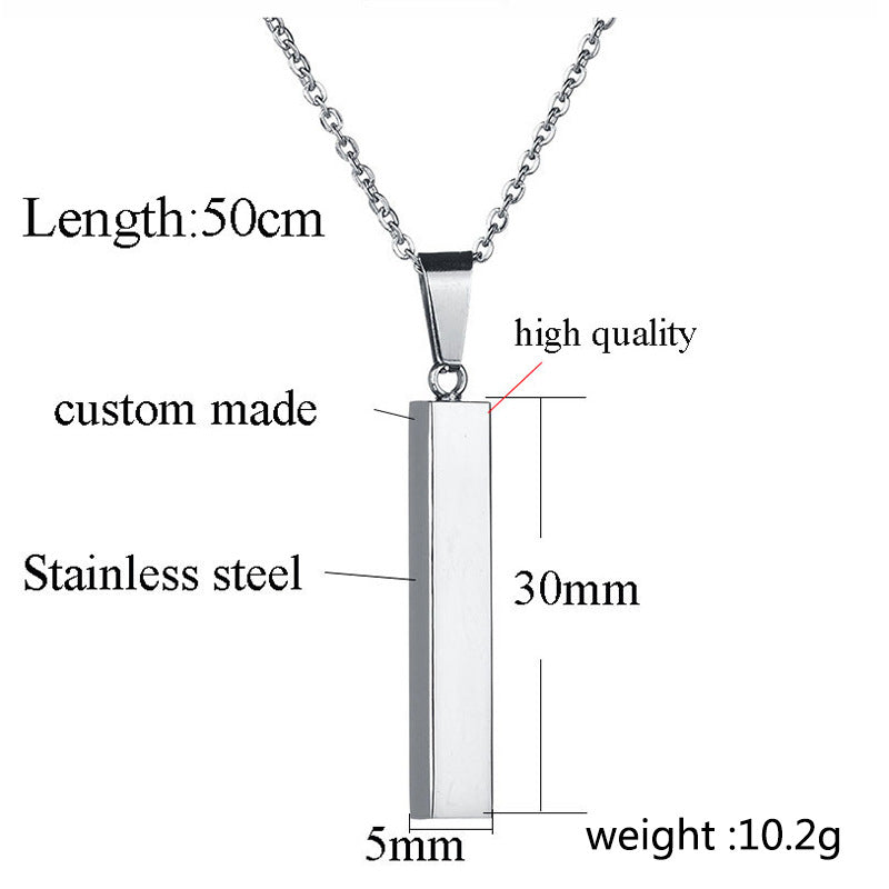 This beautiful Engraved Bar Couple Promise Necklaces Set is crafted from premium anti-allergic 316L Titanium Steel, perfect for custom engraving of names, dates, love quotes, numbers, and special symbols. A unique and special way to show your affection and appreciation, it is the perfect Valentines, Birthday, or Anniversary gift! Get two necklaces and chains for the price of one - an unbelievable deal for this amazing set!