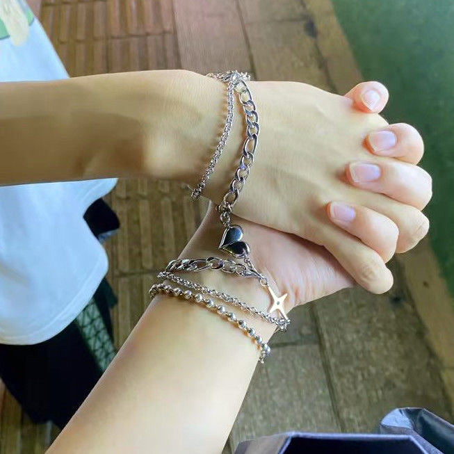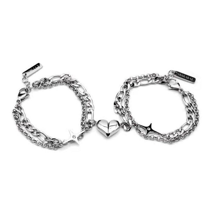 Engraved Magnetic Hearts Couple Chain Bracelets