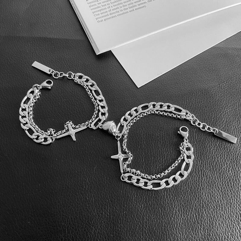 Hearts United: Engraved Magnetic Couple Chain Bracelets