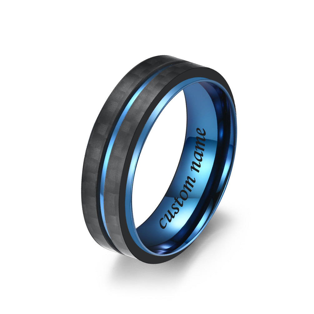 Celebrate your love with our Engraved Men's Wedding Band, a blend of 316L Stainless Steel and Carbon Fiber, measuring 7.4mm wide. Personalize it with your initials, a significant date, or a loving message, creating a unique symbol of your commitment. Crafted for enduring quality and modern style, this ring seamlessly combines stainless steel's strength with the contemporary appeal of carbon fiber. Say "I do" in style with this enduring and personalized wedding band.