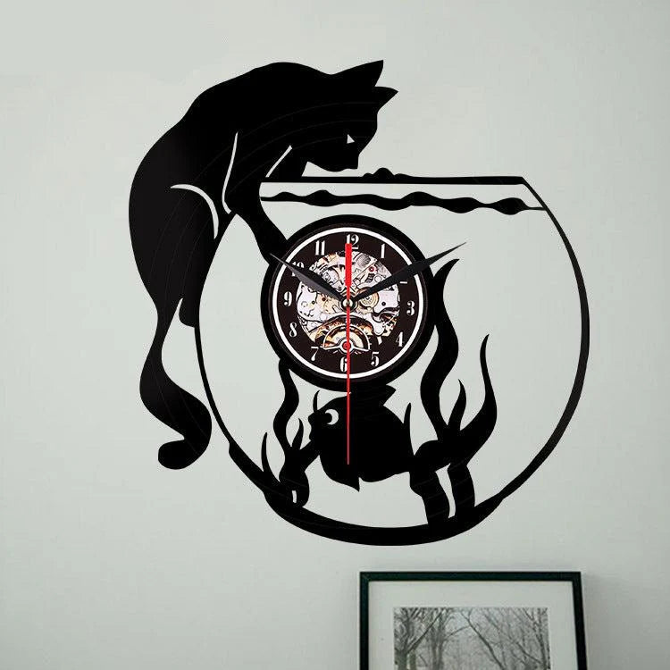 Fish Tank LP Record Silent Wall Clock – Vintage & Aquatic Design