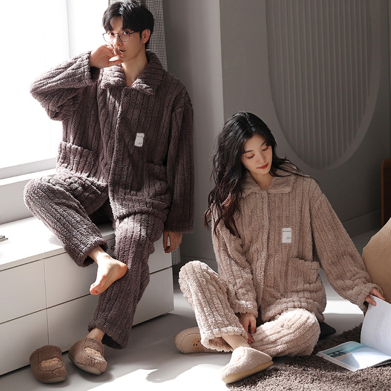 Stay warm and cozy with the Fleece Winter Loungewear PJs Set for Couples. Constructed from thickened fleece for cold weather, this loungewear features a soft, comfortable fit with convenient pockets and an elastic waistband. Get ready to cozy up this winter with this must-have loungewear set.
