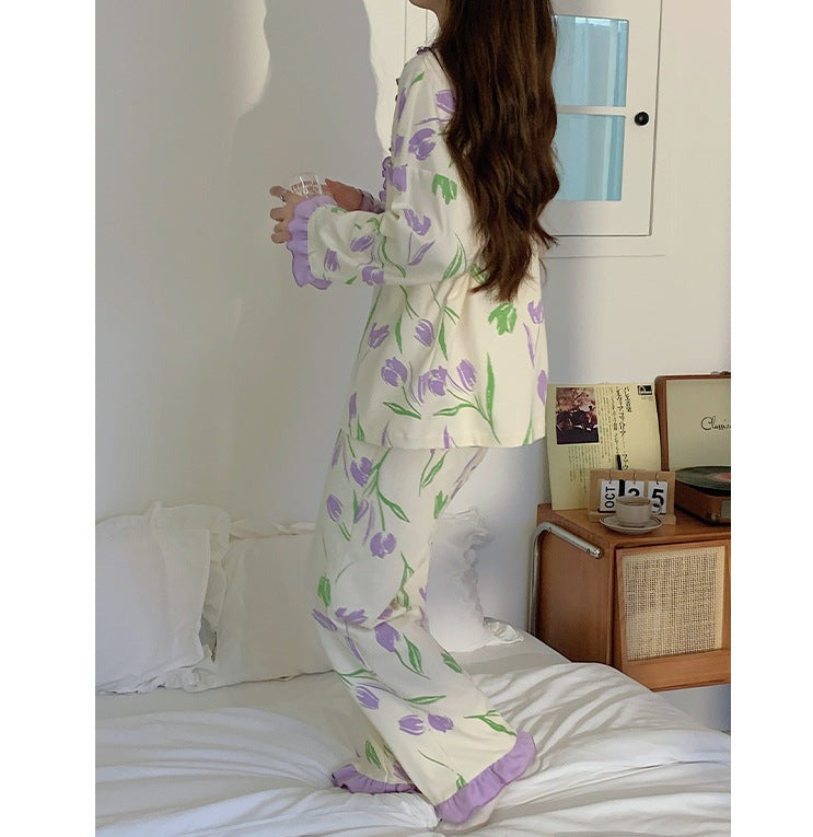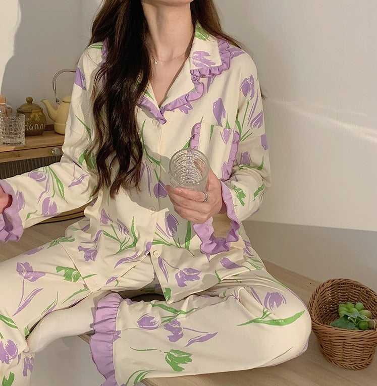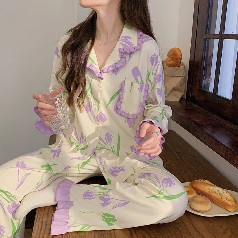 Floral Nightwear Dress Soft Pajamas Set for Women