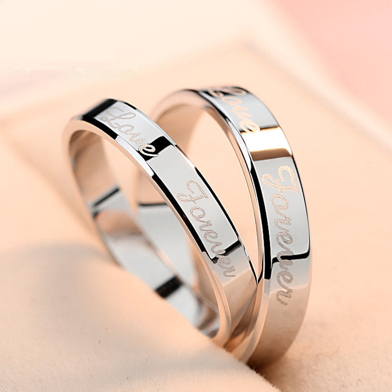 Enduring Vow: Engraved "Forever Love" Promise Rings (Set of 2)