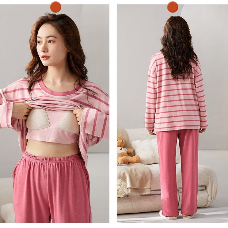 Our Girls Jammies Loungewear Set with builtin padded bra is made with luxurious and lightweight 100% Cotton fabric, tailored for a slightly loose fit and unparalleled softness. This breathable loungewear set is perfect for the Spring and Autumn seasons and is designed with overall comfort and style in mind.
