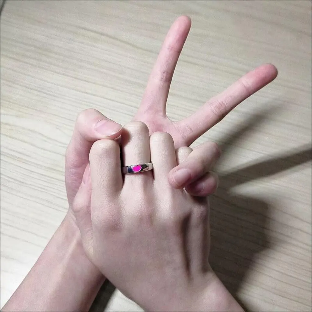 This ring set is more than just jewelry; it's a living symbol of your bond. The glowing heart serves as a beautiful metaphor for your love—a guiding light that remains brilliant and visible even when the world around you goes dark. It’s a unique and deeply romantic way to feel connected, whether you are together or apart.