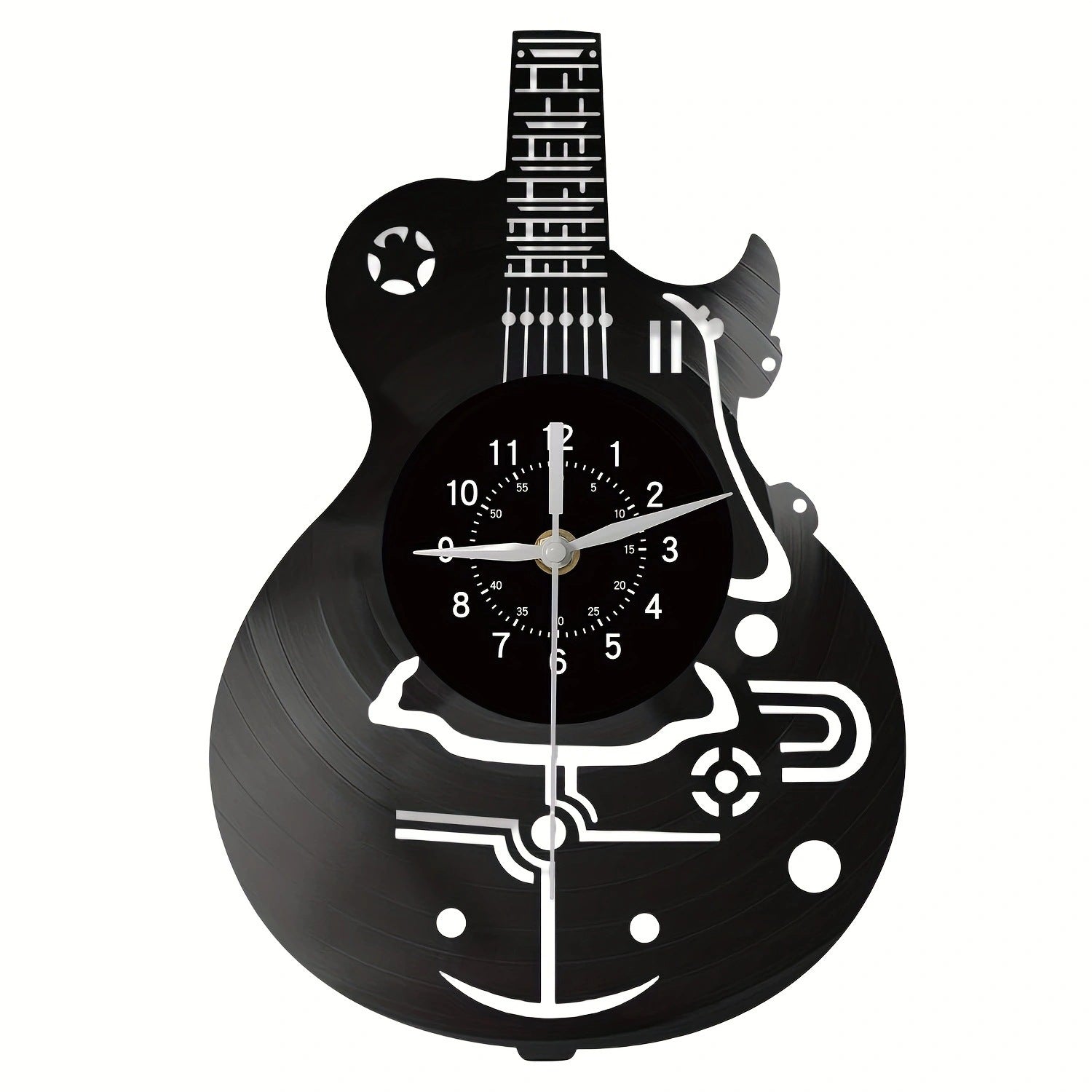 Guitar Shaped Vinyl Record Silent Wall Clock – Retro Music Lovers Design