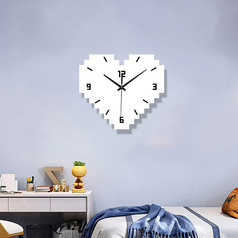 Hearts Shaped Creative Silent Wall Décor Clock – Pixelated Heart Design