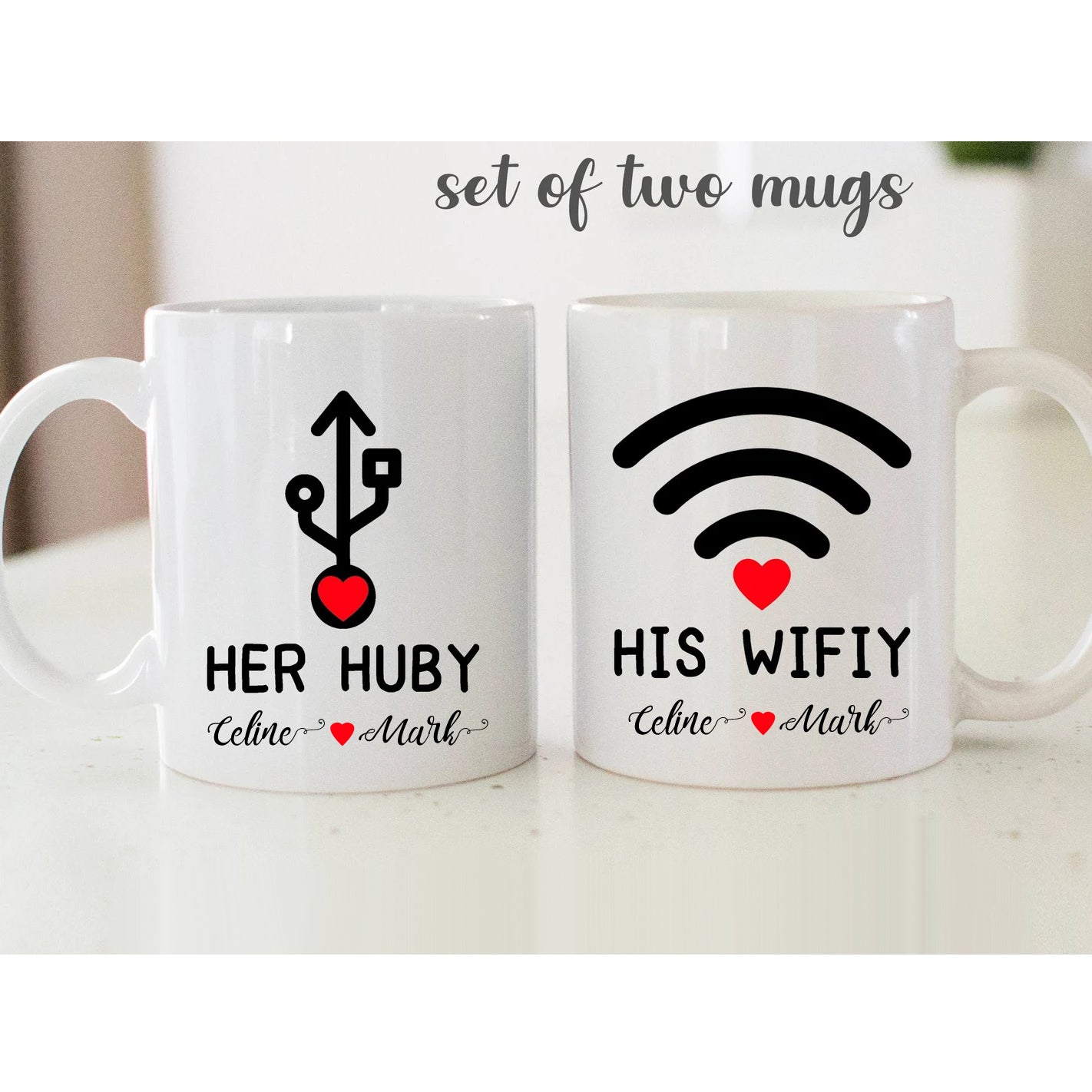 - Personalized with Your Names: Add a special touch by including your names on each mug, creating a fun play on "Huby" and "Wifey."