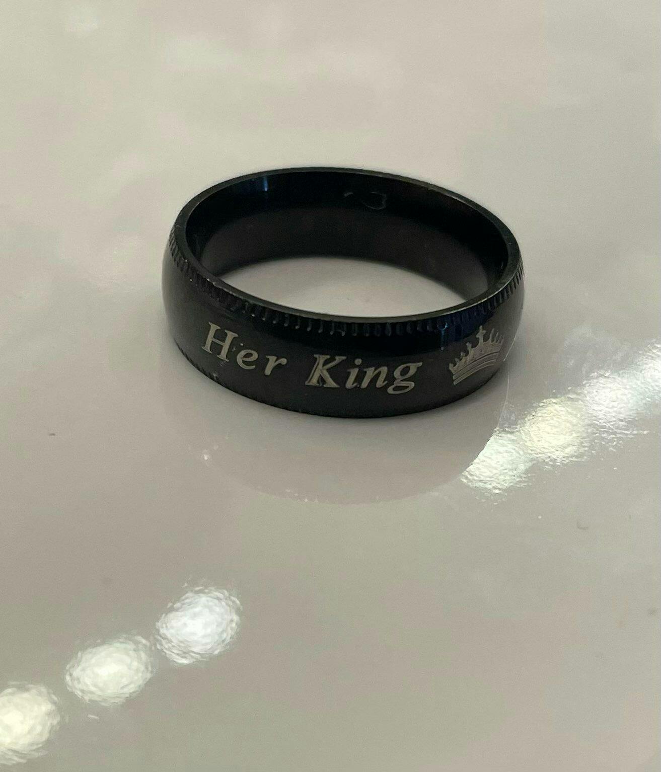 - Engraving: "His Queen" and "Her King" titles with crown symbol (pre-engraved), Optional custom engraving on band (secret message, date, initials, any language)