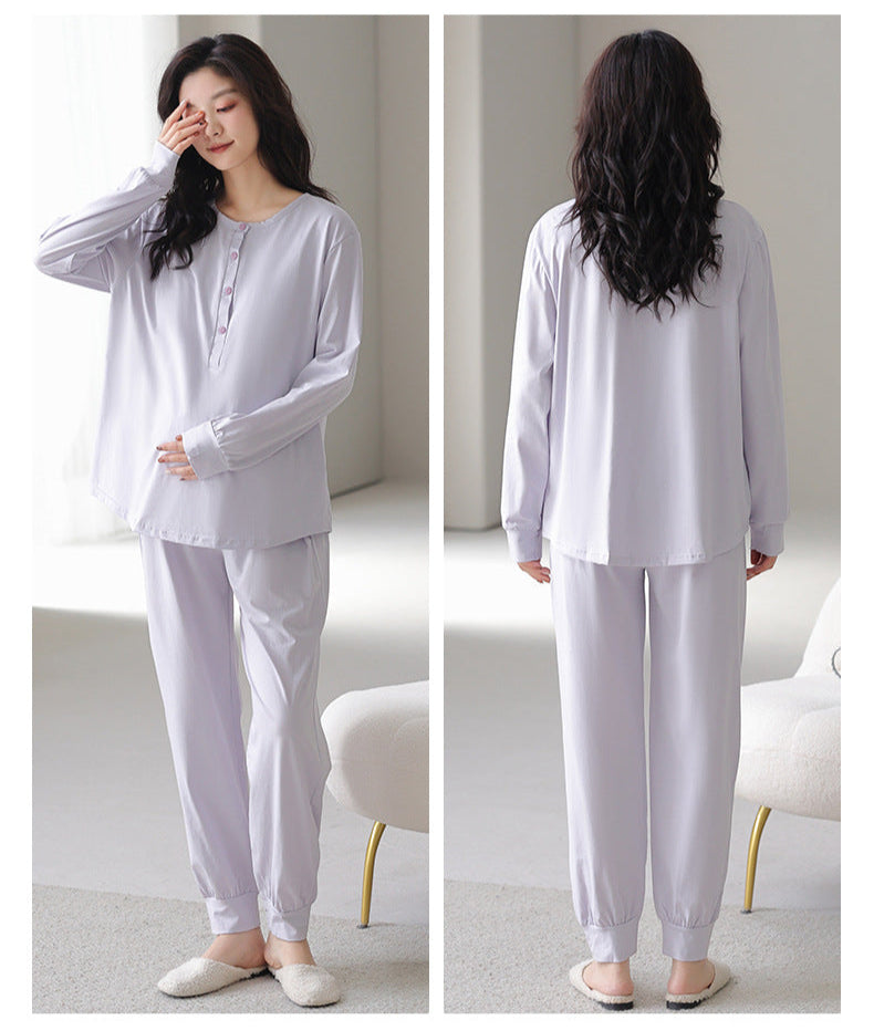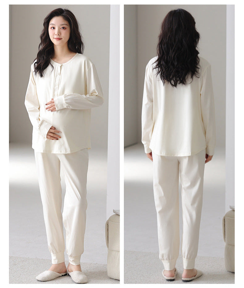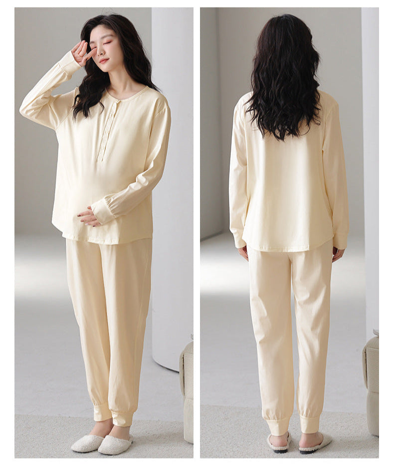 Yes! This maternity sleepwear lounge set embodies a minimalist and modern cuffed design in a solid color. It's perfect for serene home living, unwinding, achieving peaceful sleep, and cultivating a tranquil personal haven during your pregnancy and postpartum recovery. Beyond home, it's an elegant solution for sudden appointments, casual coffee runs, or comfortable travel, allowing seamless transition from rest to ready, making it an indispensable maternity lounge set for your dynamic lifestyle, offering chic & quick ventures.
