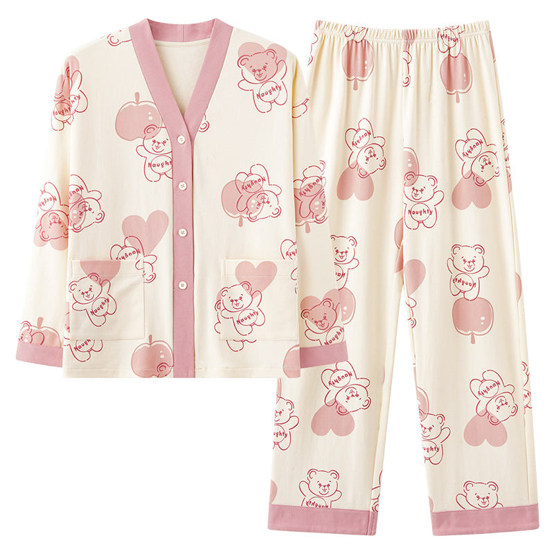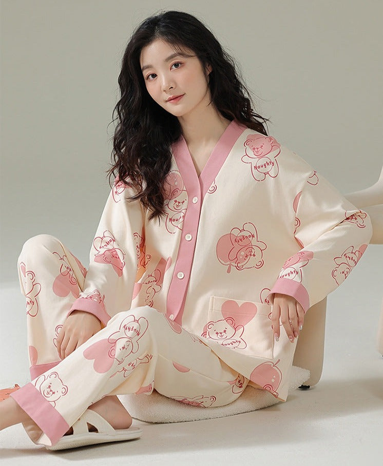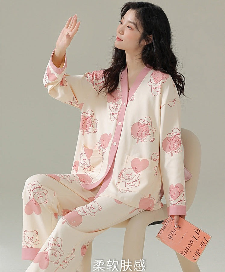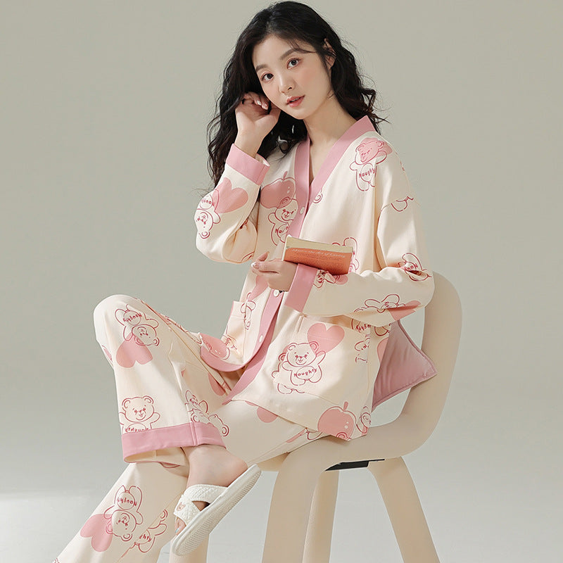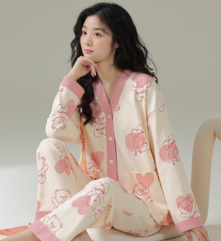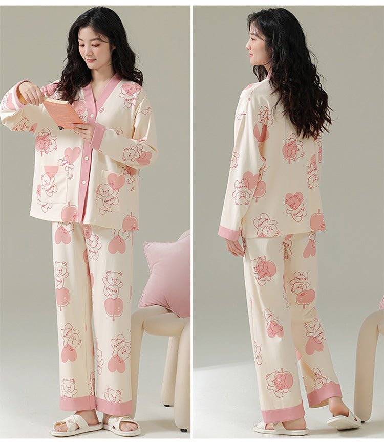 This Long Sleeve Women Pajamas Loungewear Set with pockets and an elastic waistband provides comfortable and convenient wear. Carefully crafted with 100% cotton for a soft, loose fit perfect for spring and autumn, it guarantees a perfect night's sleep.